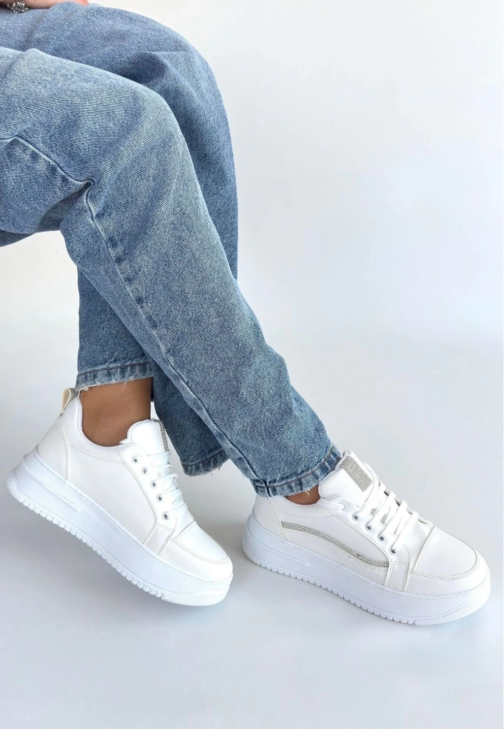 Natte Beyaz Cilt Bağcıklı Spor Ayakkabı
