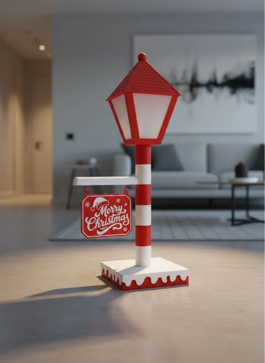 Klasik Noel tasarımından ilham alan Yılbaşı Tabelalı Dekoratif Lamba, kırmızı şapkalı direk formu ve asılı “Merry Christmas” tabelasıyla yılbaşı süslemelerine nostaljik bir dokunuş katar. 60 cm yüksekliği sayesinde bulunduğu ortamda hemen fark edilir ve dekorasyonun odak noktası haline gelir.Aparatlı yapısı sayesinde istenirse daha yüksek konumlandırılabilir, masa üstü, yer dekoru veya vitrin önü kullanımına uygundur. Yumuşak aydınlatması sayesinde ortamı boğmadan sıcak bir ışık yayar. Özellikle salon, antre, mağaza vitrini ve yılbaşı konseptli alanlarda şık bir görünüm sağlar.Yılbaşı dekorasyonunu tamamlamak isteyenler için hem dekoratif hem de aydınlatıcı bir üründür.