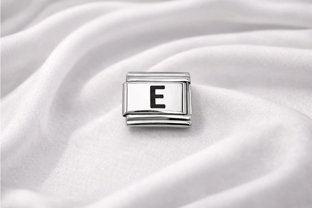 Nomination Uyumlu E Harfi Charm – Çelik Harfli Bileklik Aksesuarı ,Kişiye Özel Modüler Takı