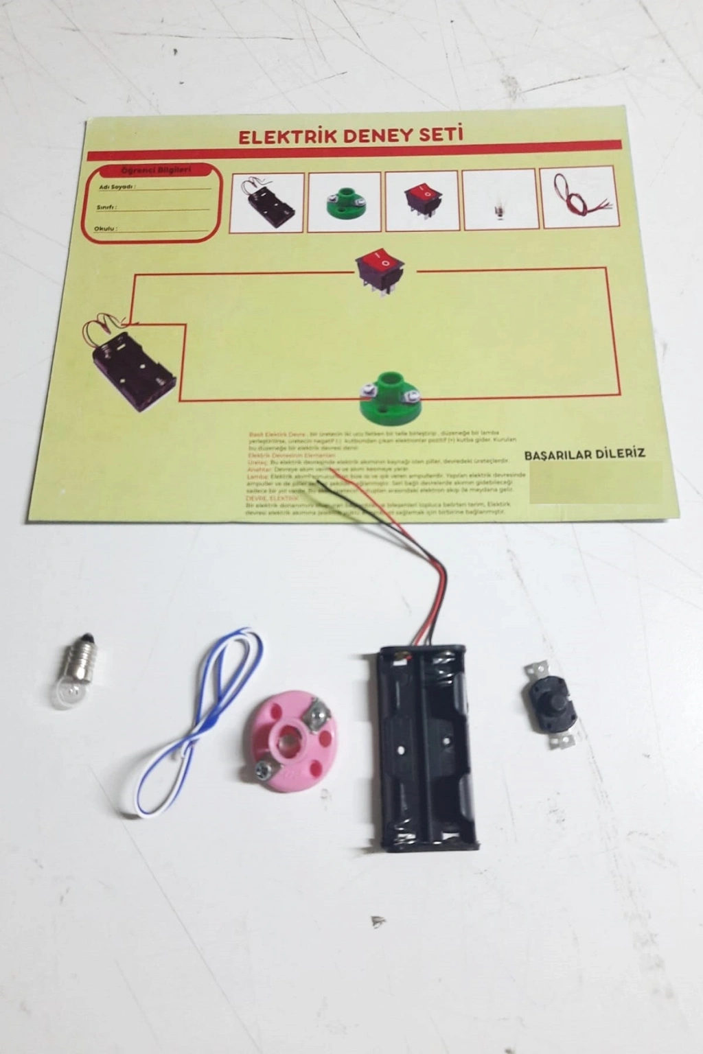 Okul Deney Seti - Elektrik Seti Ampul - Pil Yatağı - Duy -Düğme Seti