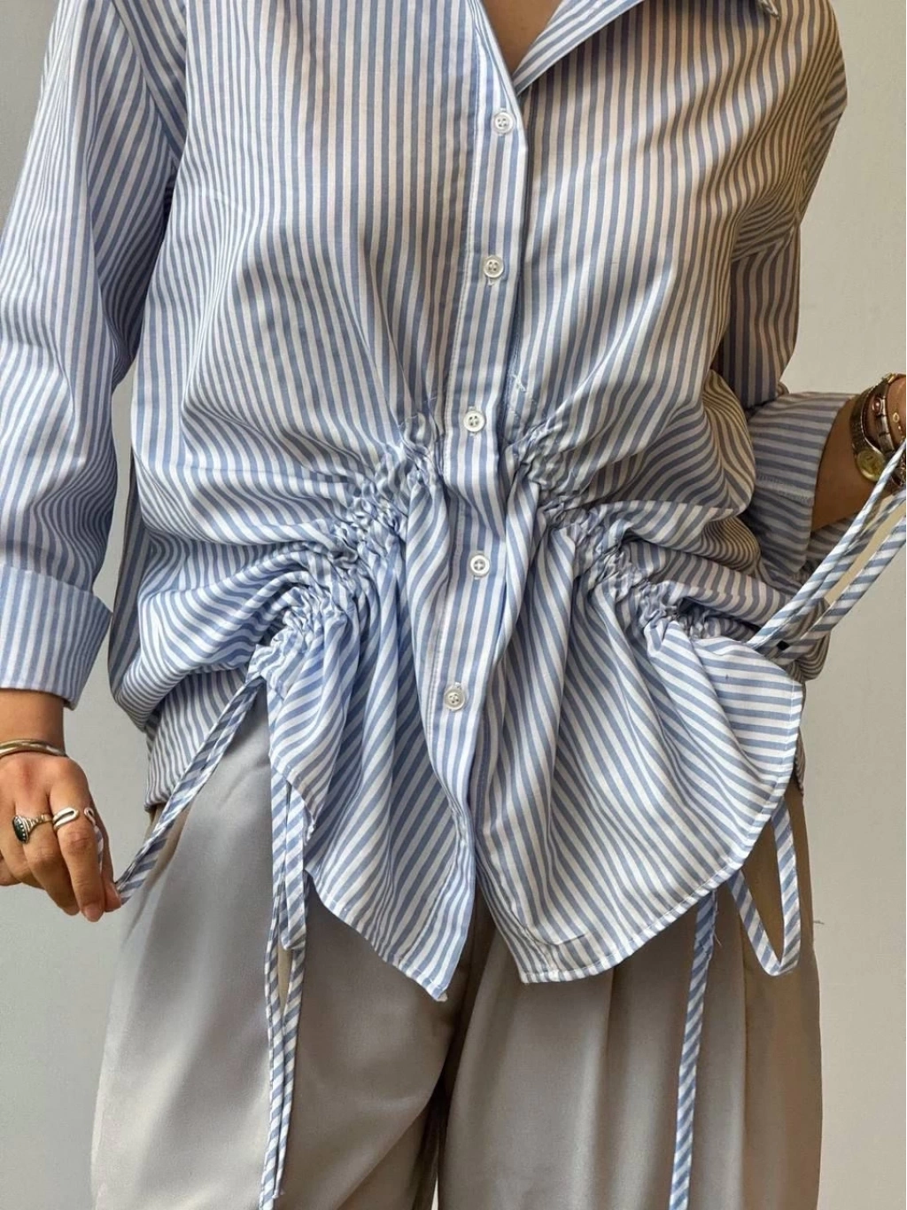 • Önü büzgü detaylı çizgili gömlek