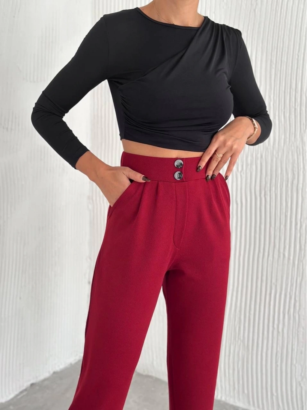 örme krep pantolon çift düğmeli