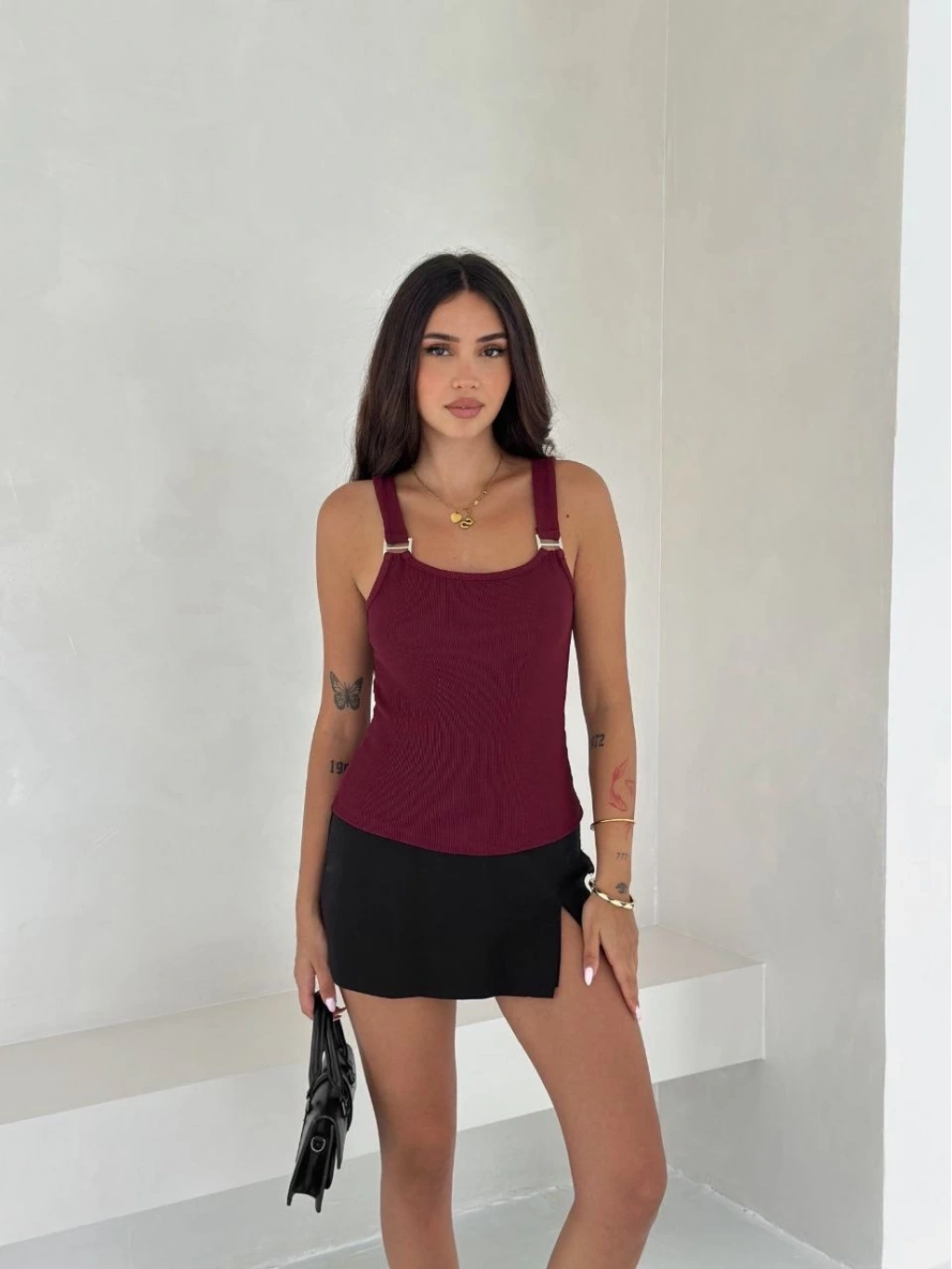 Şıklığı ve konforu bir arada arayan kadınların tercihi olan Ottoman toka askılı bluz bordo s4194, gardırobunuzun vazgeçilmezi olmaya aday.