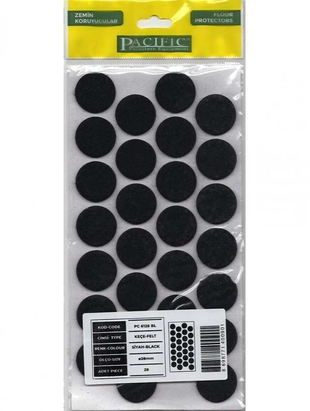 Pacific 6128 BL Yapışkanlı Keçe 28 mm Siyah