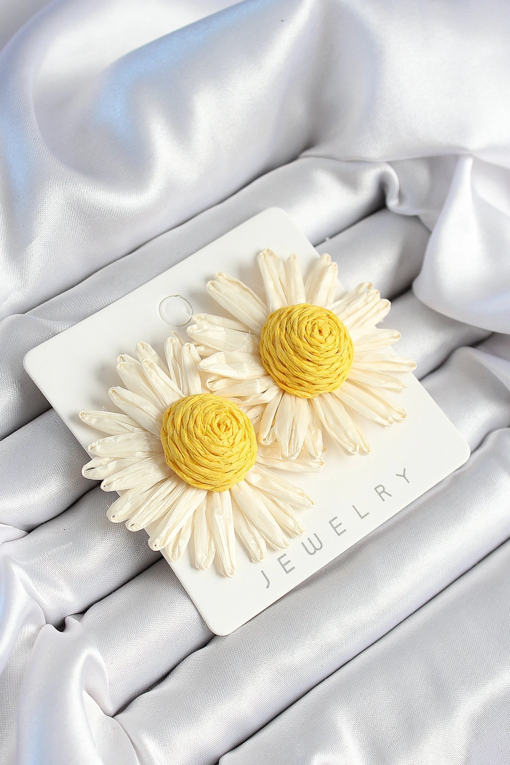 Papatya Model Beyaz Ve Sarı Renk Kadın Küpe