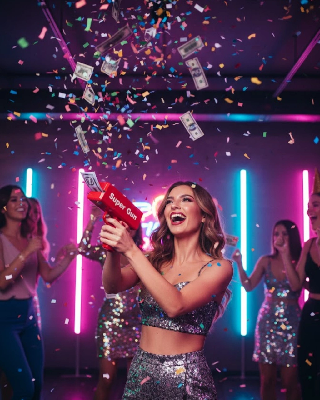Para Dolar Saçma Para Atma Tabancası Otomatik Kırmızı Oyuncak