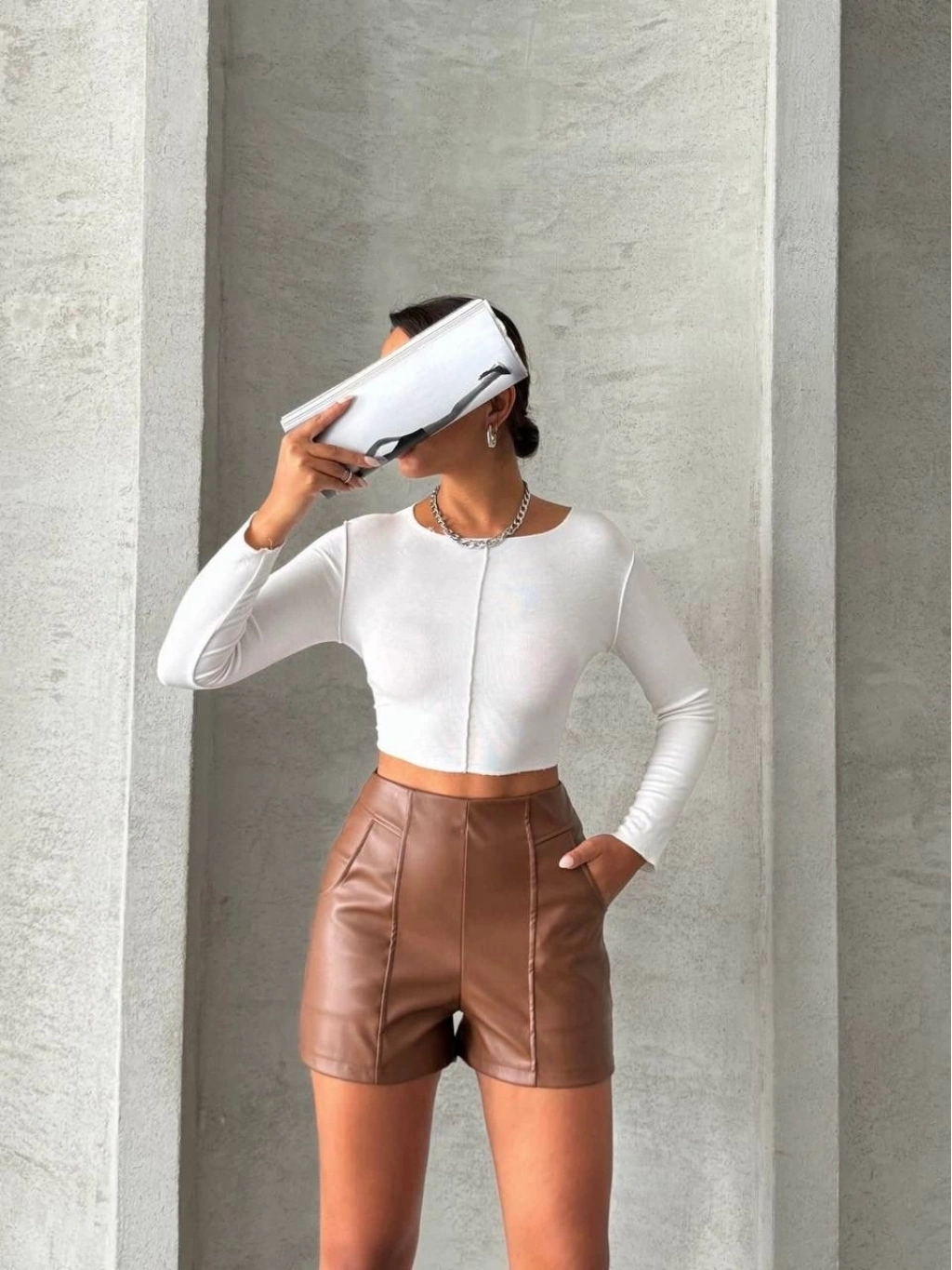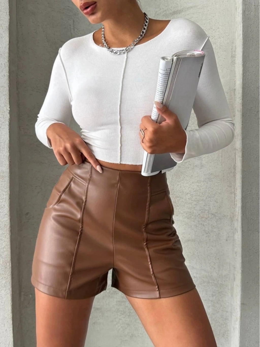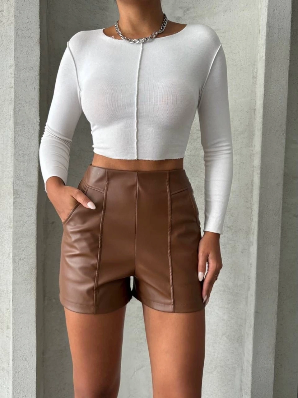 Bu parçalı cepli deri şort ile tarzınızı konuşturun, kendinizi özgür hissedin!