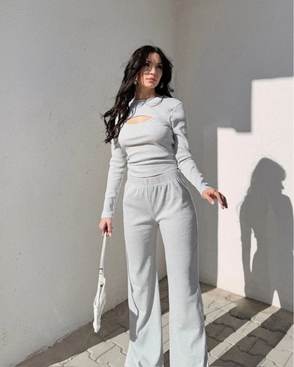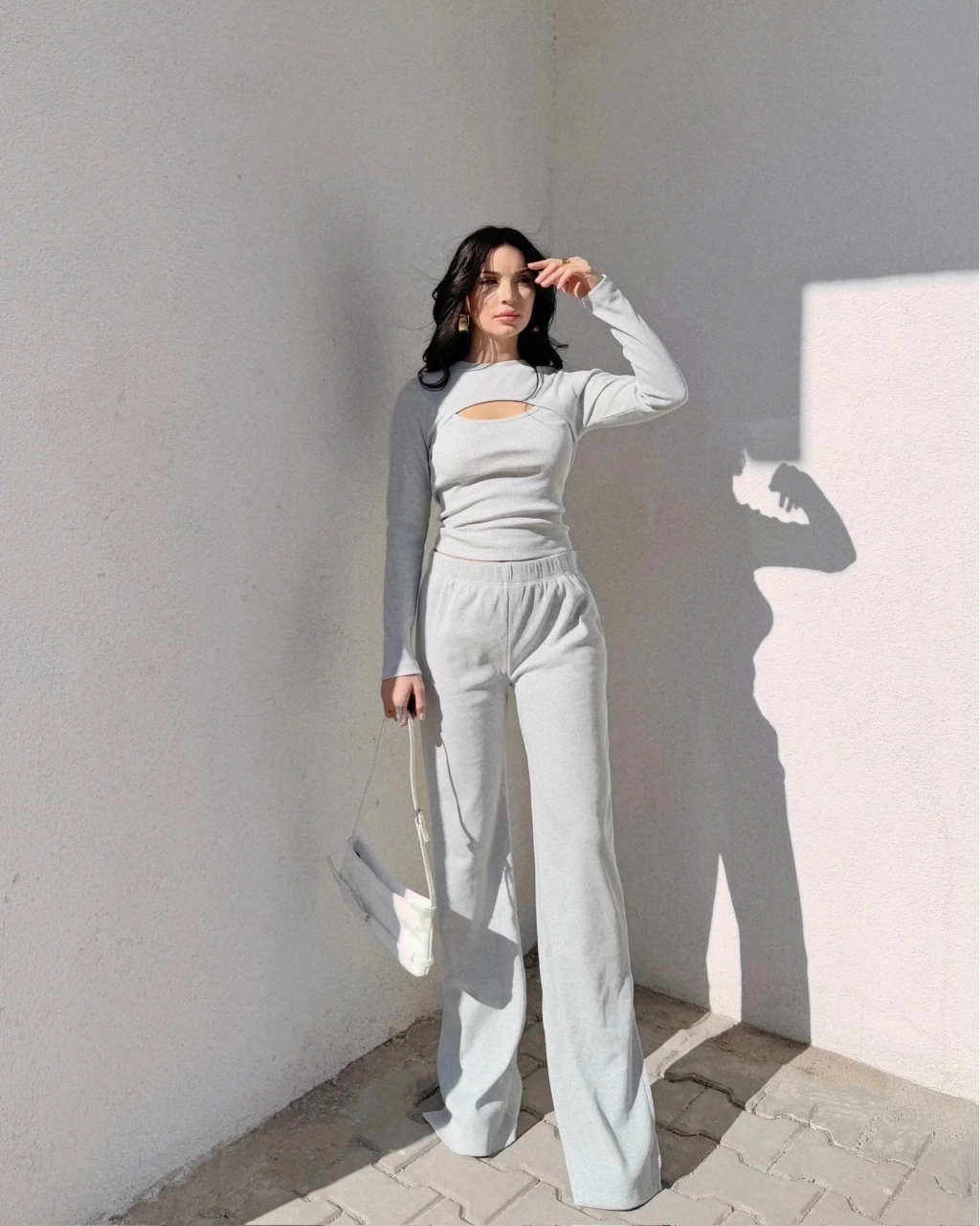 Şıklık ve rahatlığı bir arada sunan Pencereli Detaylı Alt Üst Takım Gri W3864, gardırobunuzun vazgeçilmezi olmaya aday!