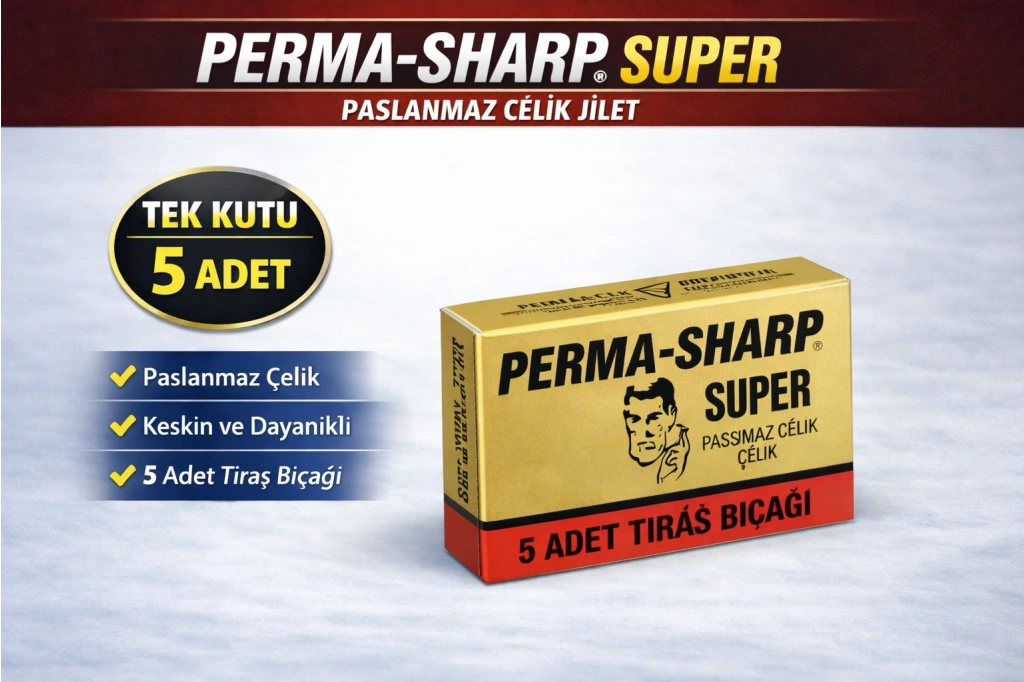 perma sharp jilet, perma sharp super 5li, 5 li jilet kutusu, 20 kutu perma sharp, 100 adet jilet, paslanmaz çelik jilet, berber jileti, geleneksel tıraş bıçağı, ustura jileti, profesyonel jilet, ekonomik jilet paketi, klasik tıraş jileti, keskin jilet
