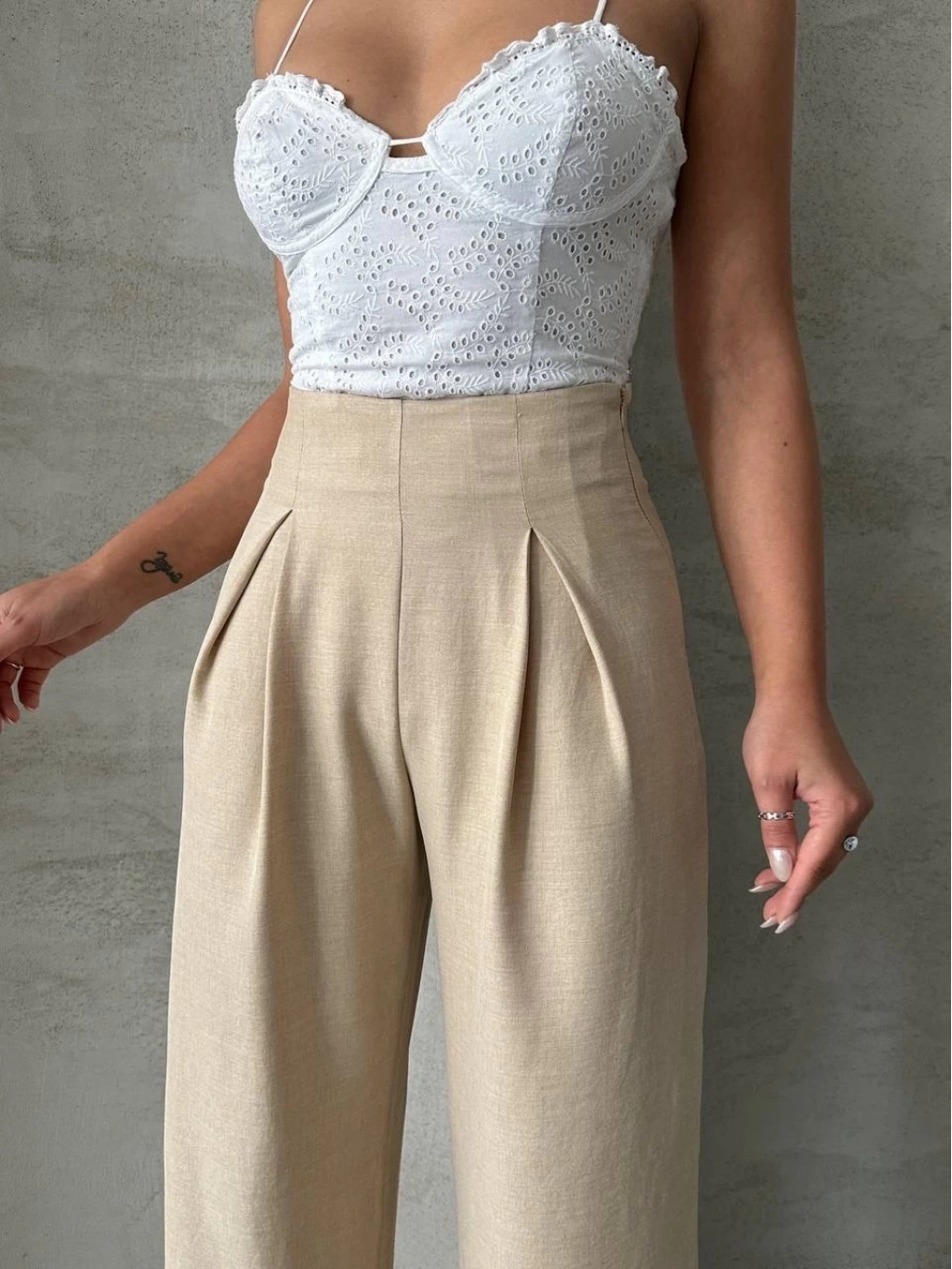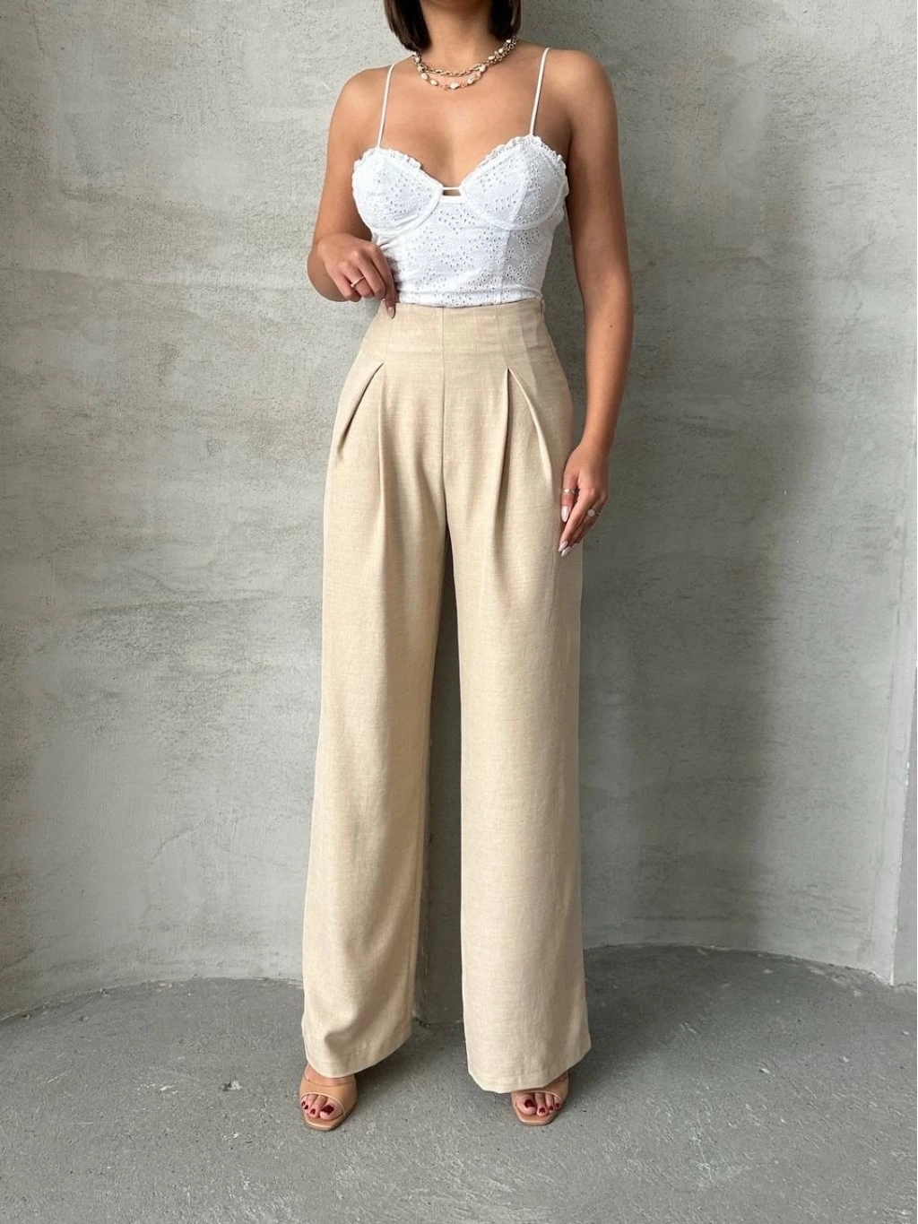 Pileli keten pantolon, yaz aylarında şıklık ve rahatlık arayan kadınların tercihi olacak