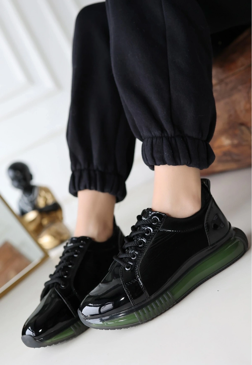 Piona Siyah Rugan Yeşil Tabanlı Spor Ayakkabı