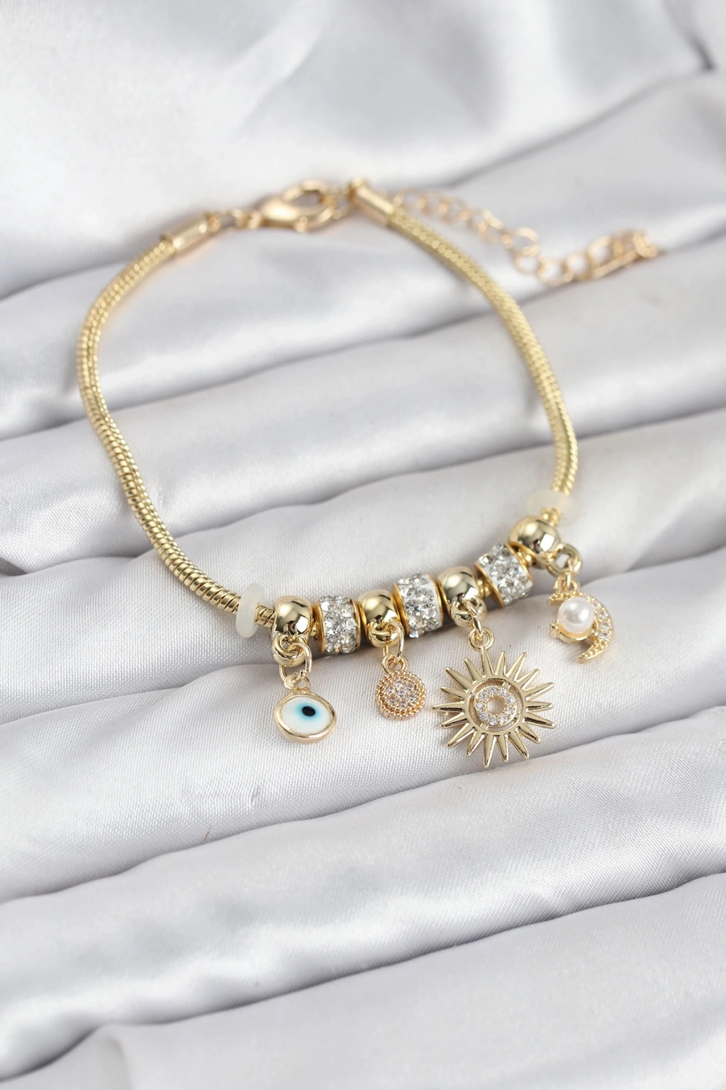 Pirinç Gold Renk Güneş Charmlı Kadın Bileklik