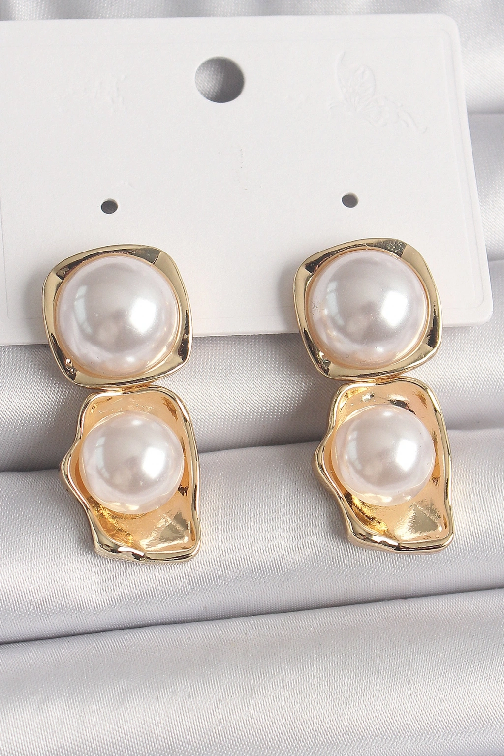 Pirinç Gold Renk İnci Kare Model Kadın Küpe