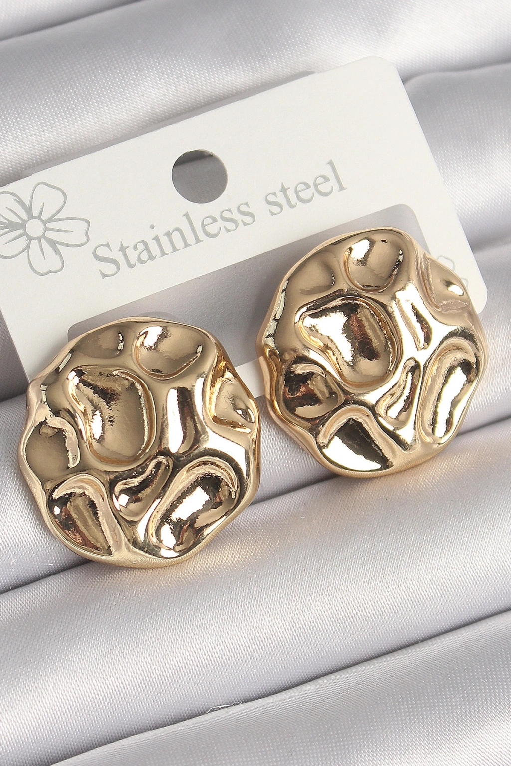 Pirinç Gold Renk İşlemeli Daire Plaka Model Kadın Küpe