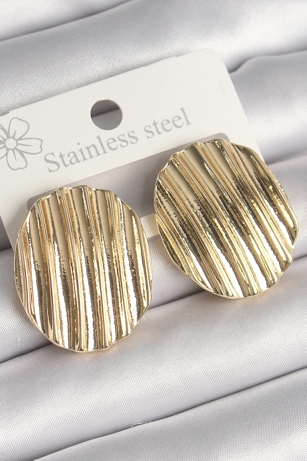 Pirinç Gold Renk İşlemeli Daire Plaka Model Kadın Küpe