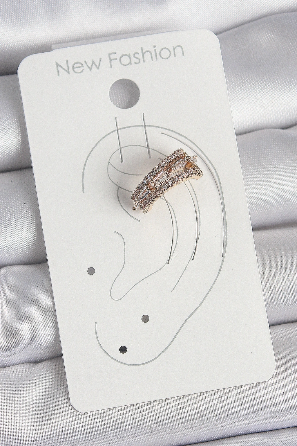 Pirinç Gold Renk Zirkon Taşlı 3'Lü Sıralı Model Kadın Kıkırdak Küpe
