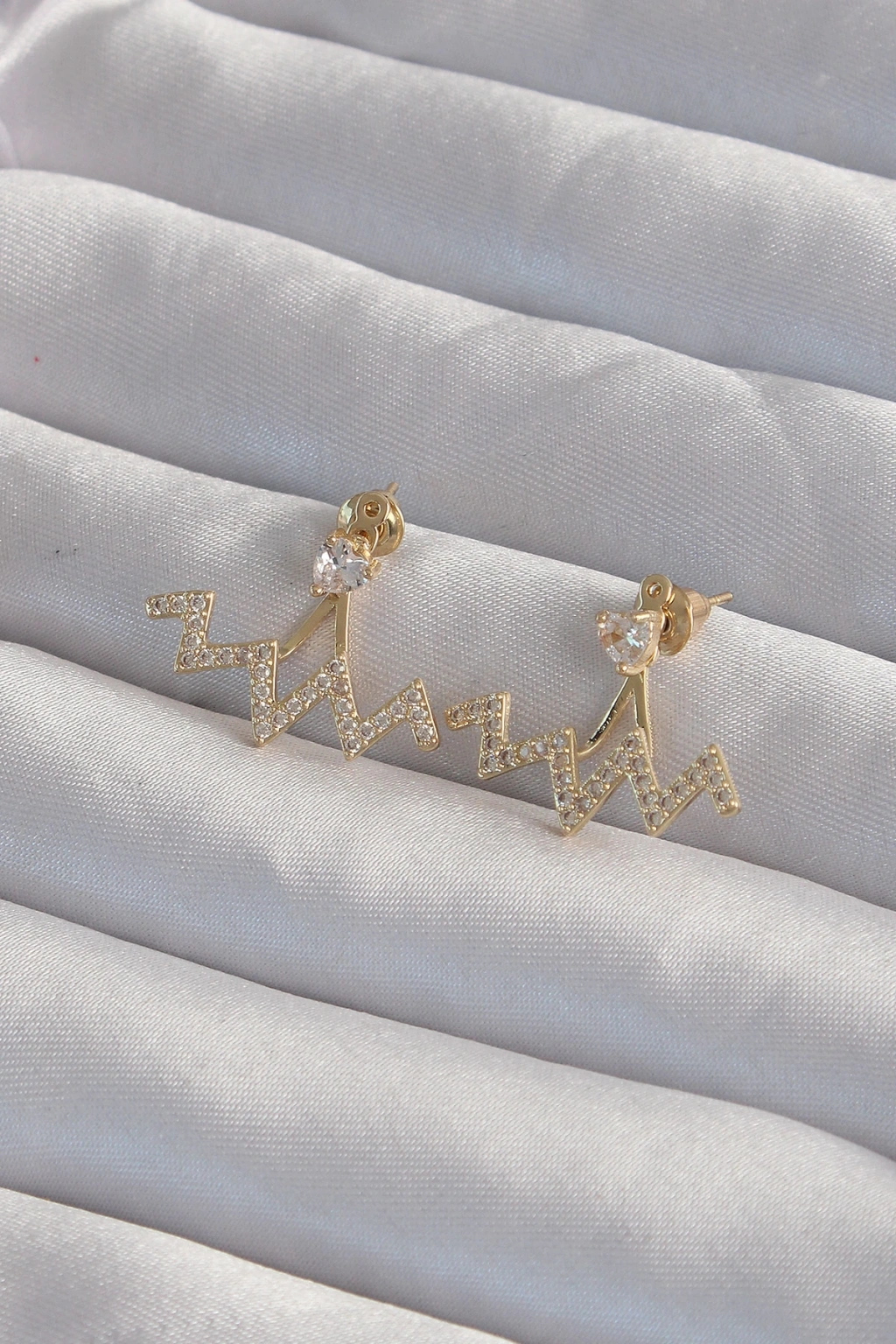Pirinç Gold Renk Zirkon Taşlı Zikzak Küpe