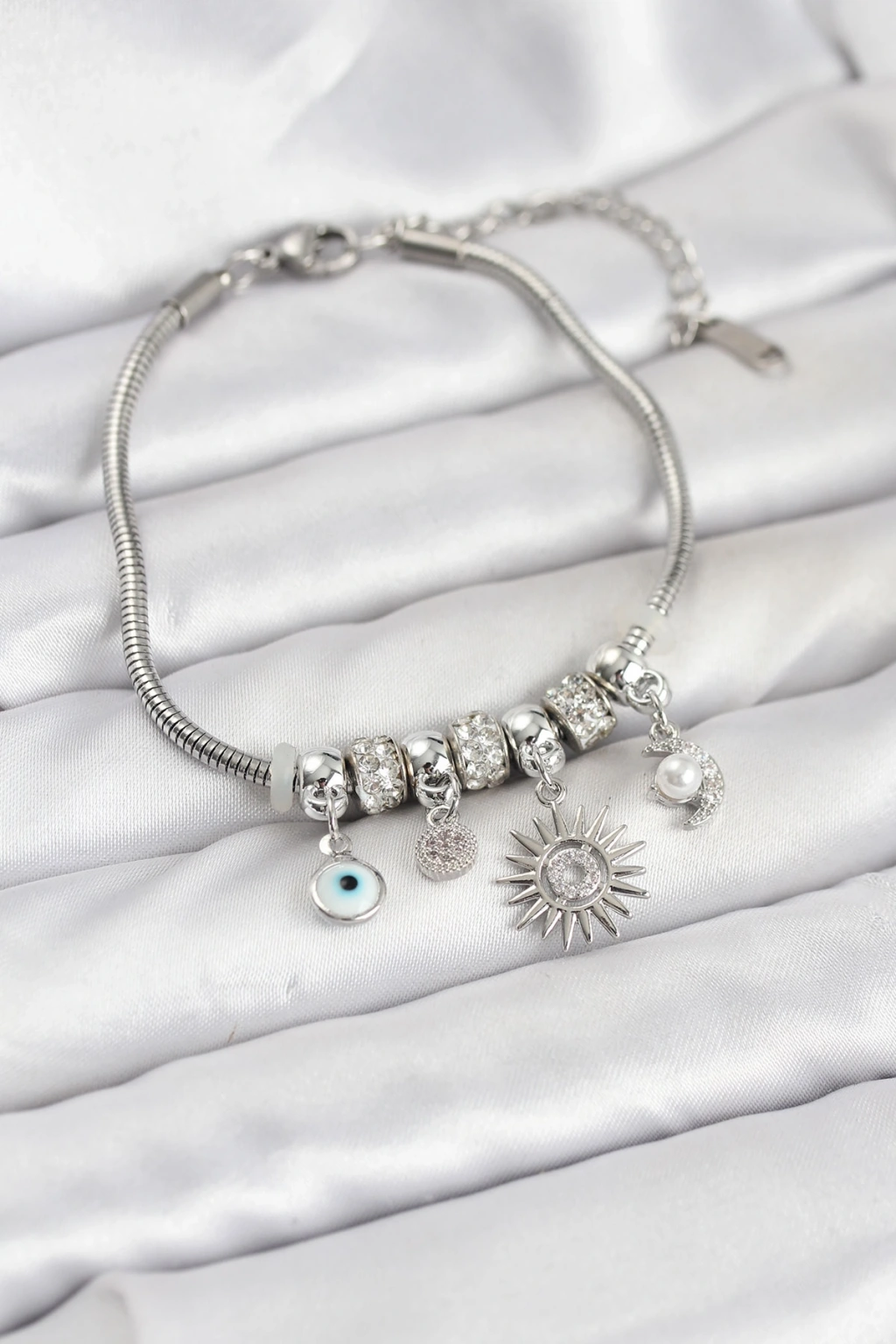 Pirinç Gümüş Renk Güneş Charmlı Kadın Bileklik