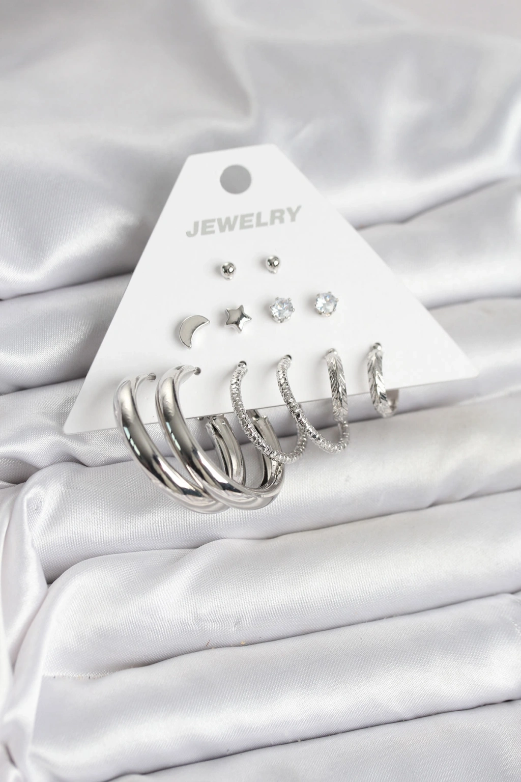 Pirinç Gümüş Renk Halka Modelli 6 Çift Kadın Küpe