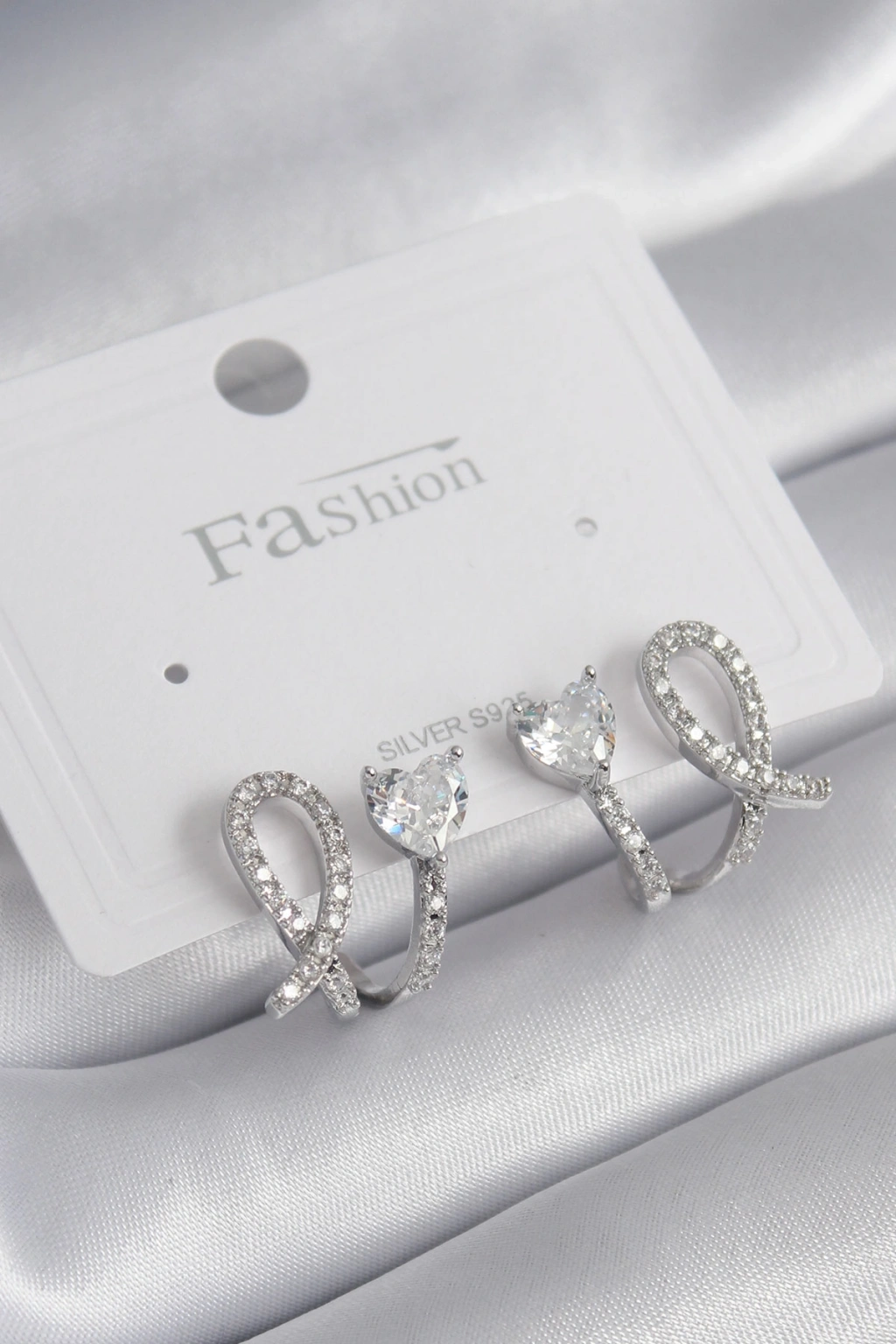 Pirinç Gümüş Renk Kalp Model Zirkon Taşlı Kadın Küpe