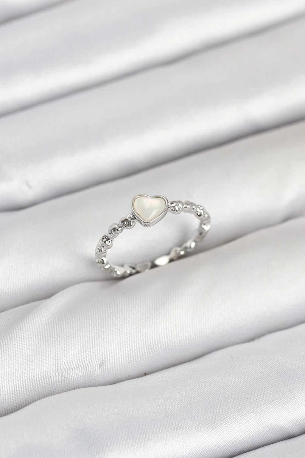 Pirinç Gümüş Renk Kalpli Model Kadın Yüzük