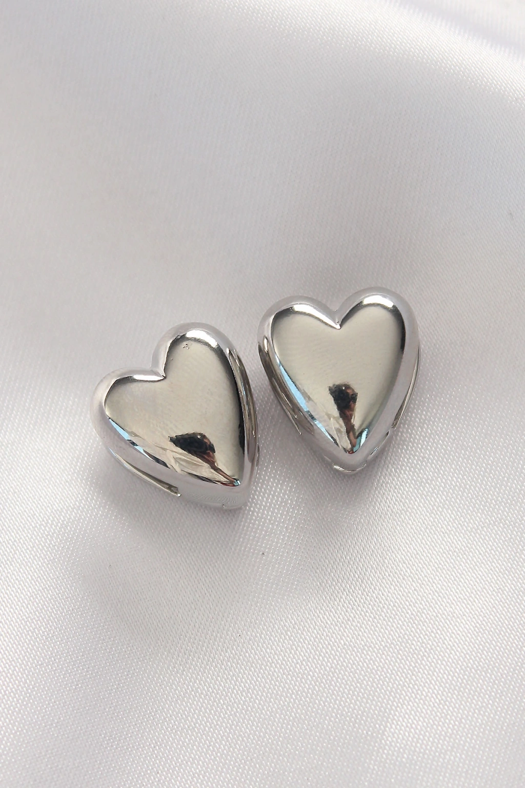Pirinç Gümüş Renk Minimal Bombeli Kalp Küpe