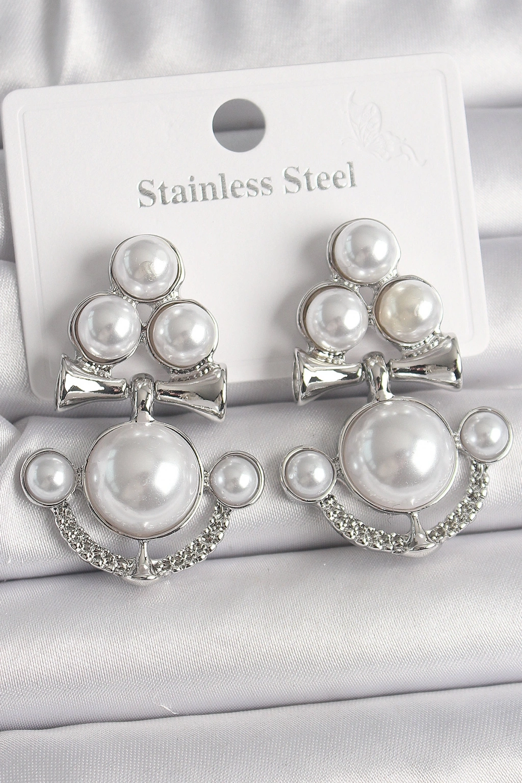 Pirinç Gümüş Renk Sallantı İncili Çapa Model Kadın Küpe