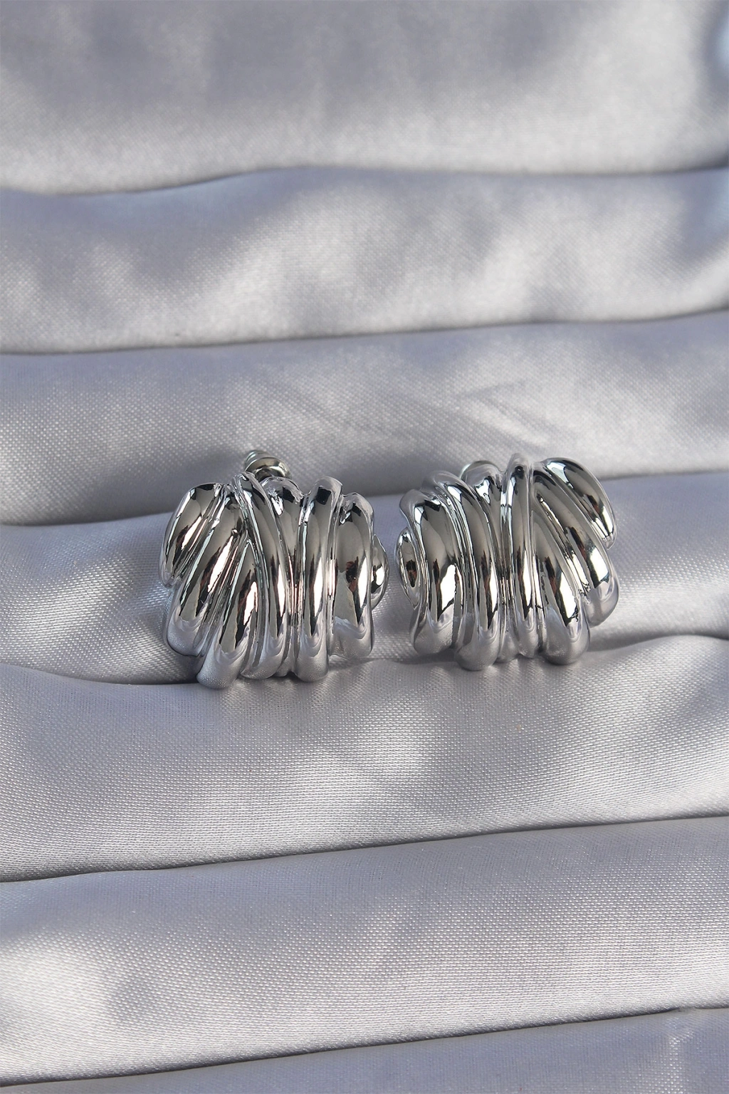 Pirinç Gümüş Renk Tırtıklı Bombe Model Küpe