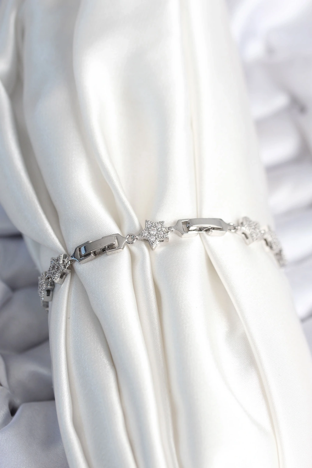 Pirinç Gümüş Renk Yıldız Model Kadın Bileklik