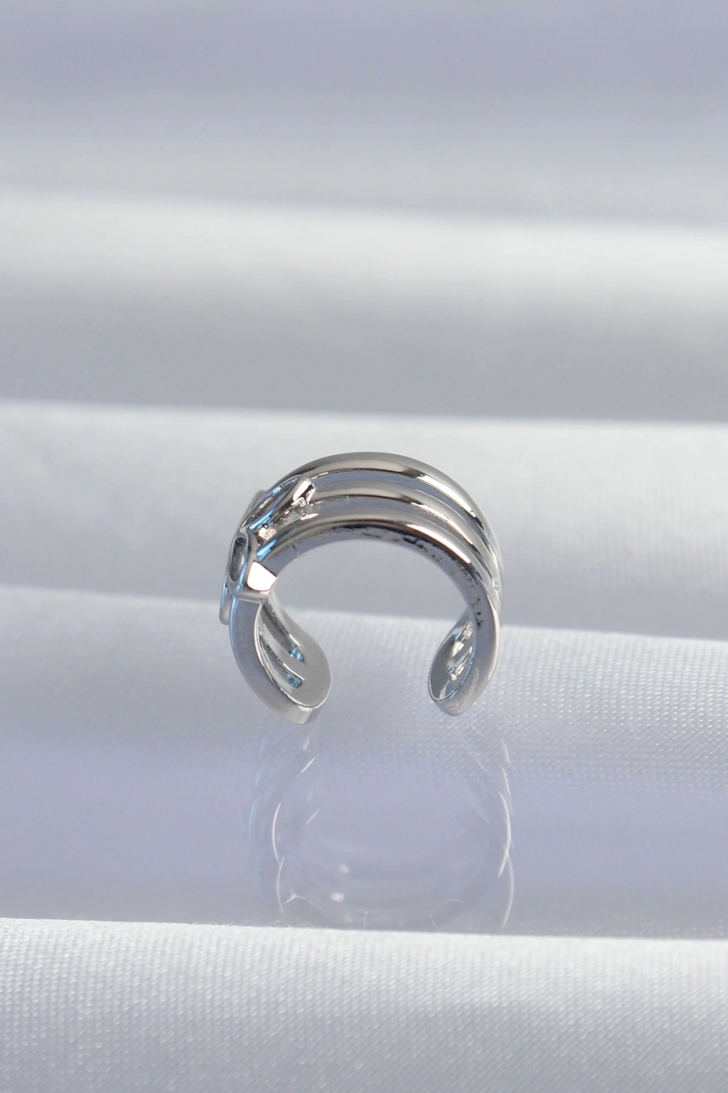 Pirinç Gümüş Renk Yonca Earcuff Küpe