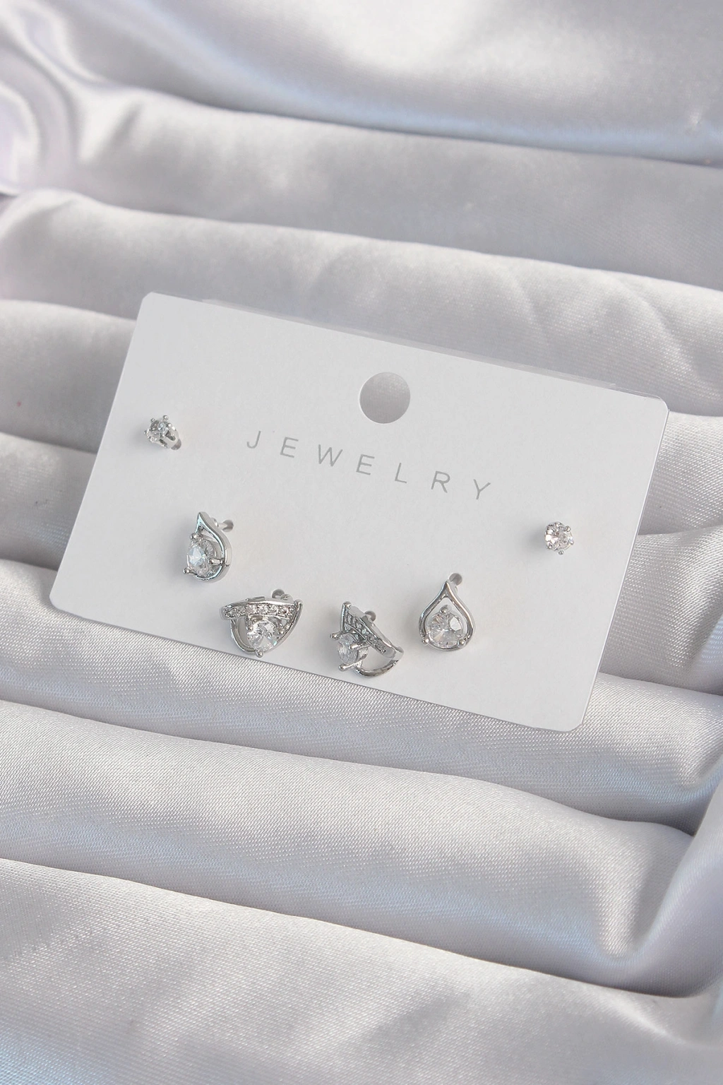 Pirinç Gümüş Renk Zirkon Taşlı Damla Model Küpe Seti