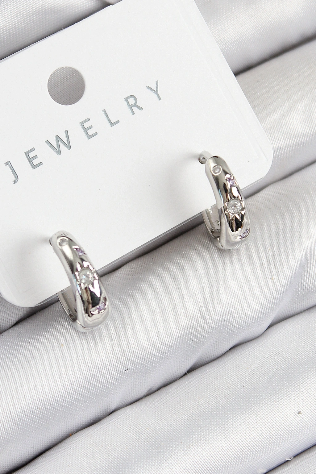 Pirinç Zirkon Taşlı Halka Model Gümüş Renk Kadın Küpe