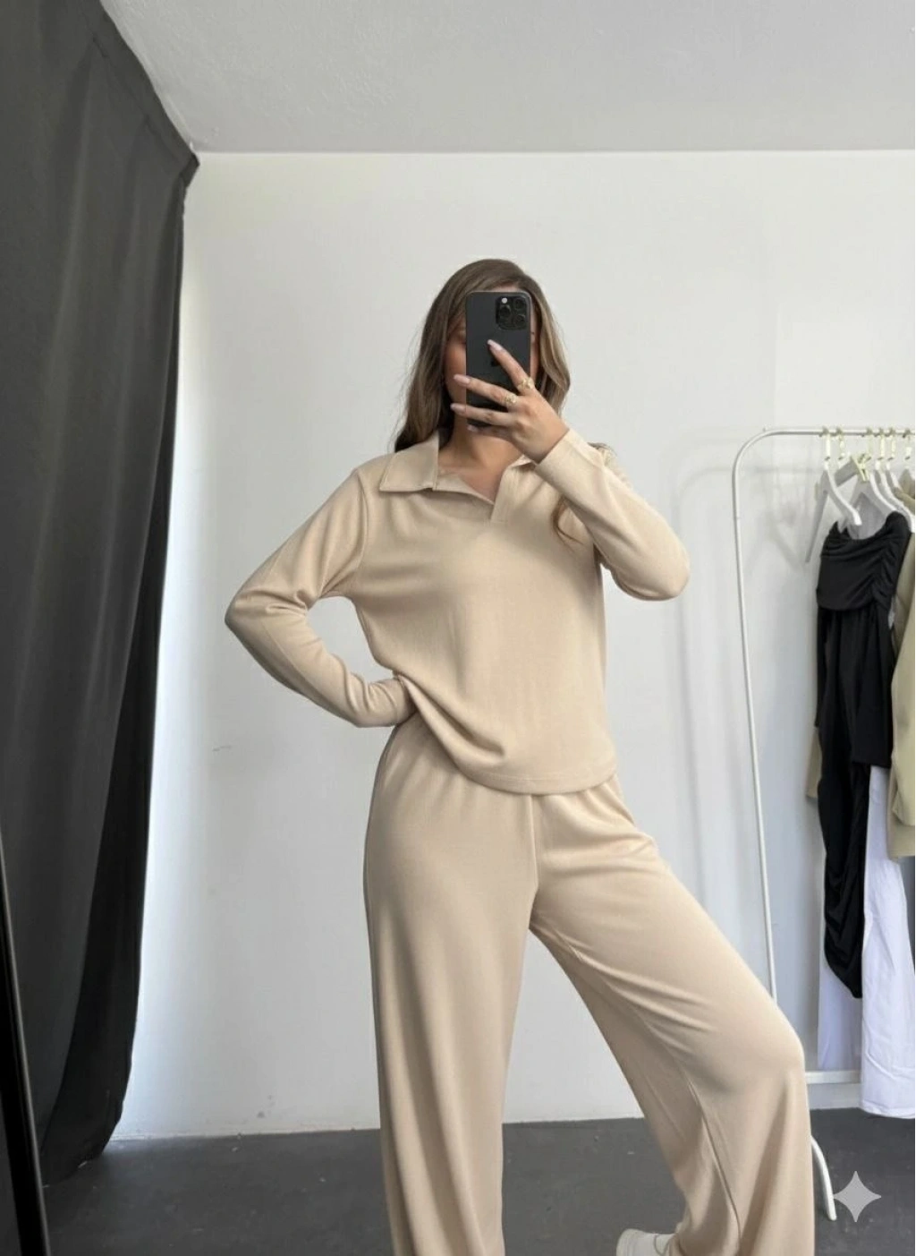 Bej rengiyle şıklığı ve rahatlığı bir arada sunan Polo Yaka Alt Üst Kollu Modal Takım, gardırobunuzun vazgeçilmezi olmaya aday!