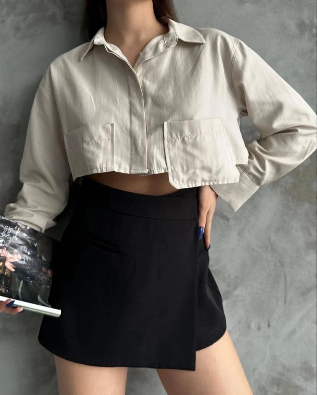 • Uzun kollu ve crop kesim tasarımıyla son derece şık bir görünüm sunar.