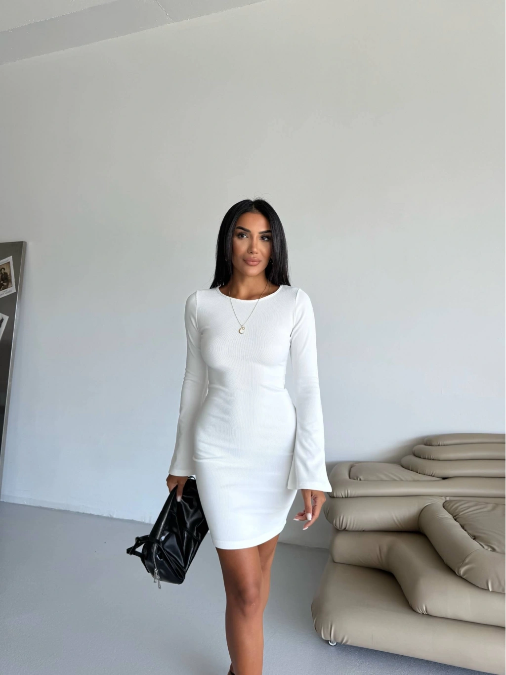 Prenses kol detayına sahip olan bu beyaz elbise, şıklık ve rahatlığı bir arada sunuyor. Esnek kumaşı sayesinde hareket özgürlüğü sağlarken, vücudu saran kesimiyle de zarif bir görünüm elde etmenizi sağlar.
