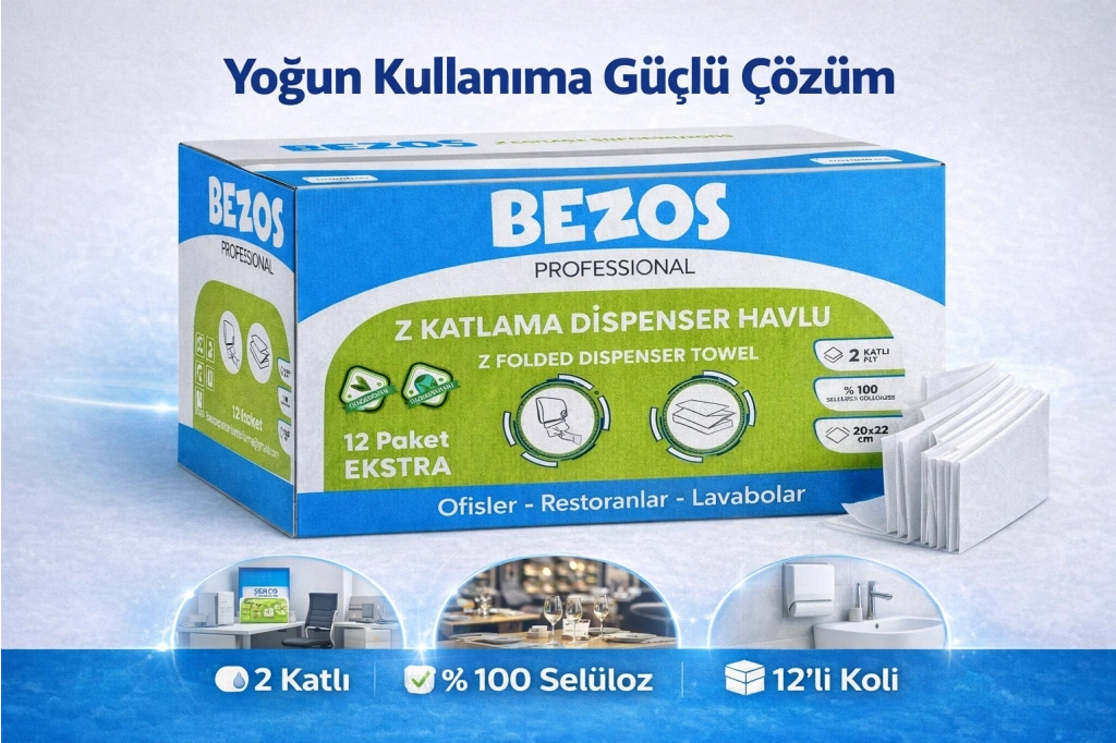 Bezos Professional Z Katlamalı Dispenser Havlu, yoğun kullanıma uygun yapısıyla işletmelerin hijyen ve maliyet beklentilerini aynı anda karşılamak için üretilmiştir.