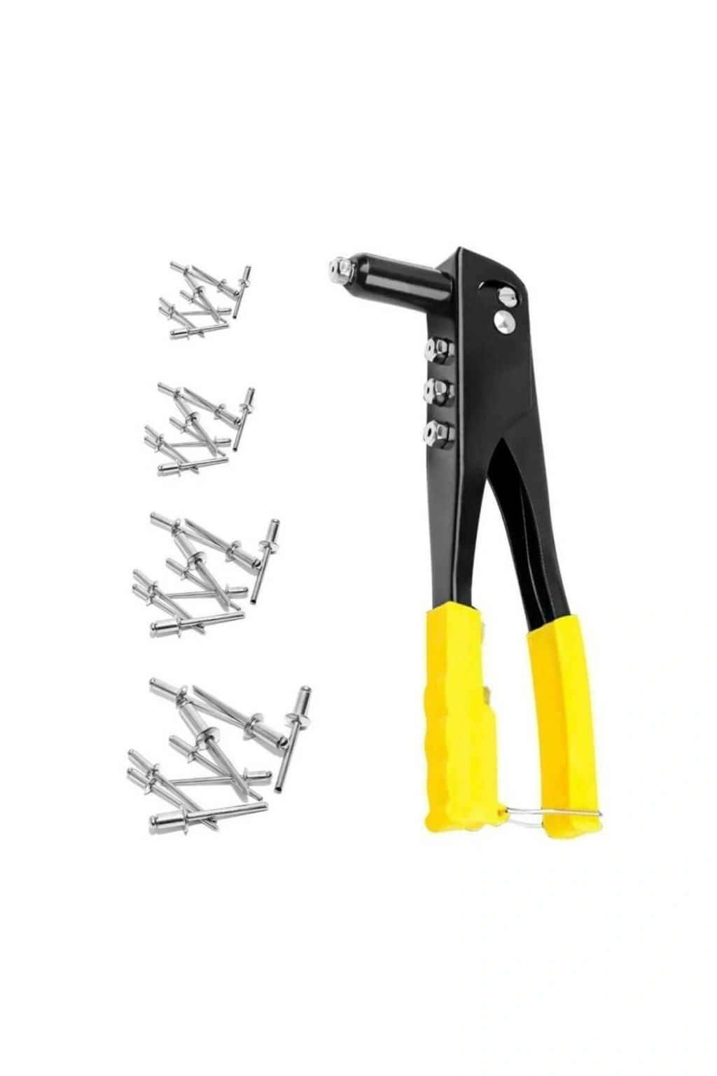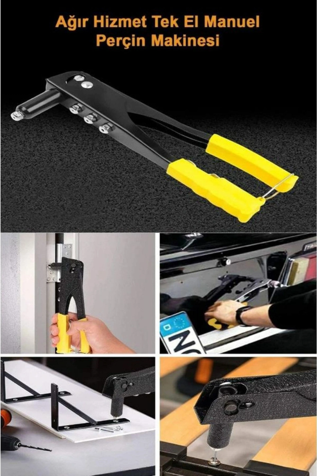 • Profesyonel Perçin Tabancası Araç Koltuk Mobilya Perçin Hediyeli Dikkat: Paket içerisinde 4 farklı boyda toplam 40 adet perçin hediye gönderilmektedir. 0tomobil, koltuk montajı, mobilya v.b yerlerde kullanılmak üzere tasarlanmış bir ürün Profesyonel Perçin Tabancası ! Ergonomik yapısı sayesinde ele rahat oturur ve yüksek performans sağlar. Ürün Özellikleri: 4 farklı perçin kalınlığı için değiştirilebilir uçlar Özel metal çelik ve sağlam gövde Basit uygulama ile kolay montaj Tutturulacak objelere perçin başının gireceği büyüklükte bir delik açtığınızda, perçin başını deliğe sokup makineyle sıktırırsınız. Ürün Ölçüsü: Genişlik: 8,5 cm Boy: 24 cm Paket İçeriği: 1 Adet Profesyonel Perçin Tabancası 4 farklı boyda toplam 40 adet perçin.