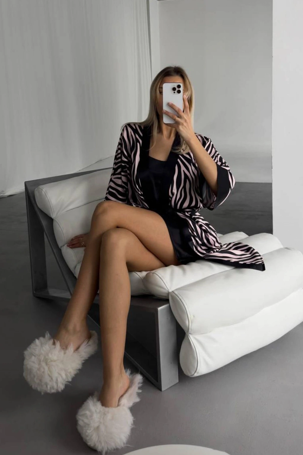 Doğanın vahşi güzelliğini feminen zarafetle birleştiren bu özel set, pudra siyah leopar desenli gecelik ve sabahlıktan oluşuyor. Dijital baskı teknolojisiyle oluşturulan canlı desenler, ipeksi dokulu kumaşla birleşerek şıklık ve konforu bir arada sunuyor. Göz alıcı tasarımıyla ev giyiminize sofistike bir hava katacak bu set, özel hissetmek isteyen kadınlar için tasarlandı.