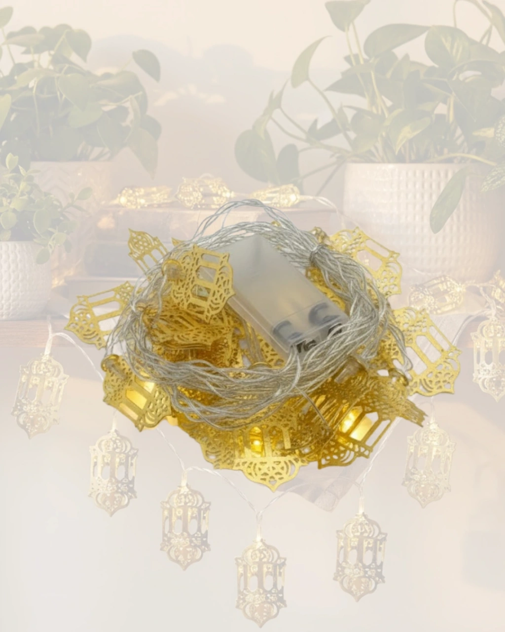 Ramazan Dekoru İçin Pilli LED Işık Altın Fener Tasarımlı