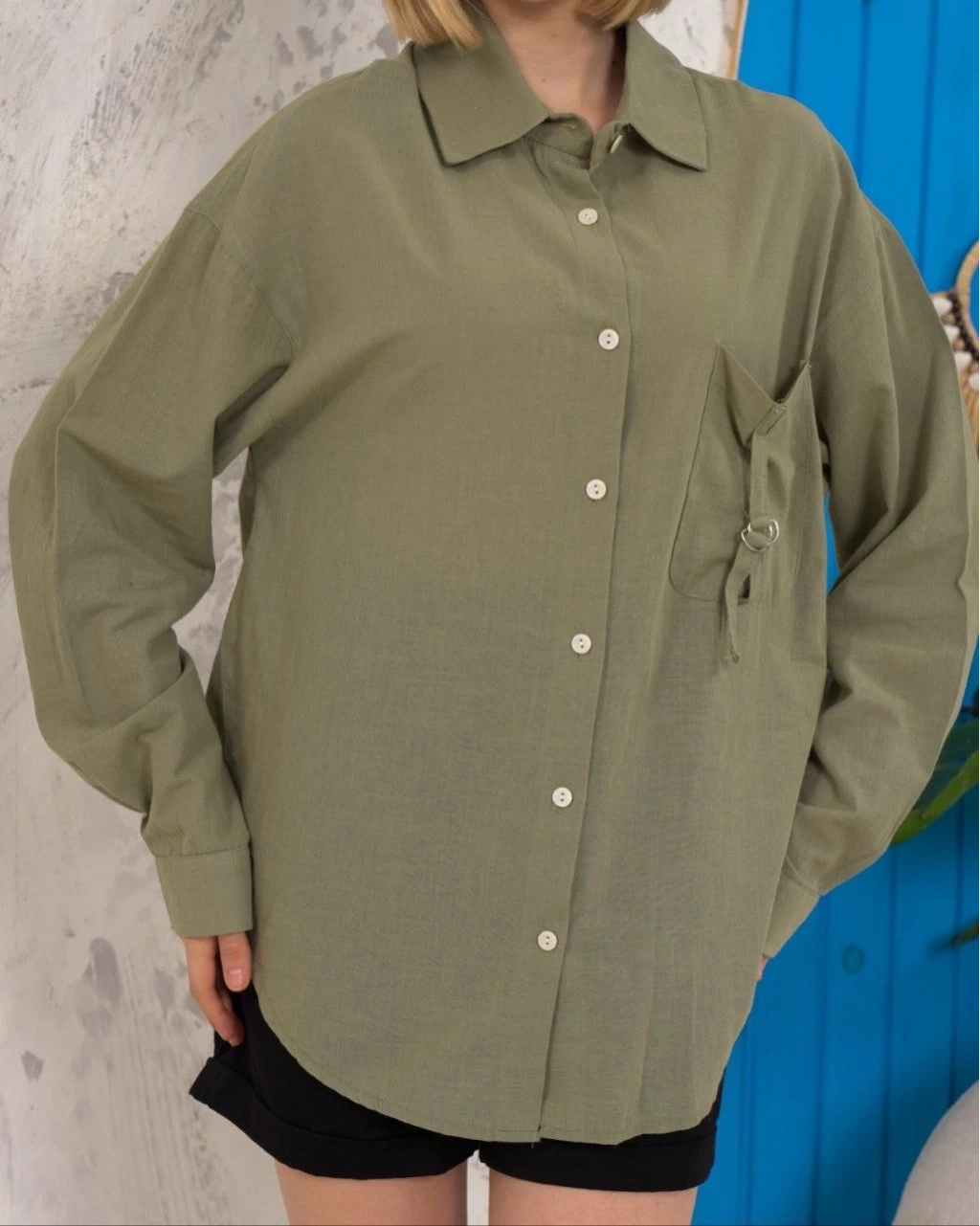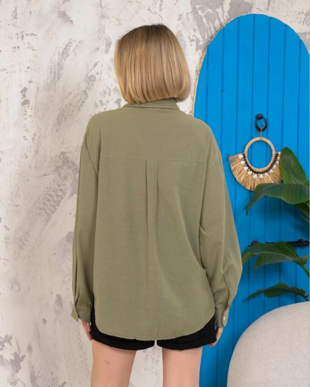 Relax fit keten gömlek haki s255349