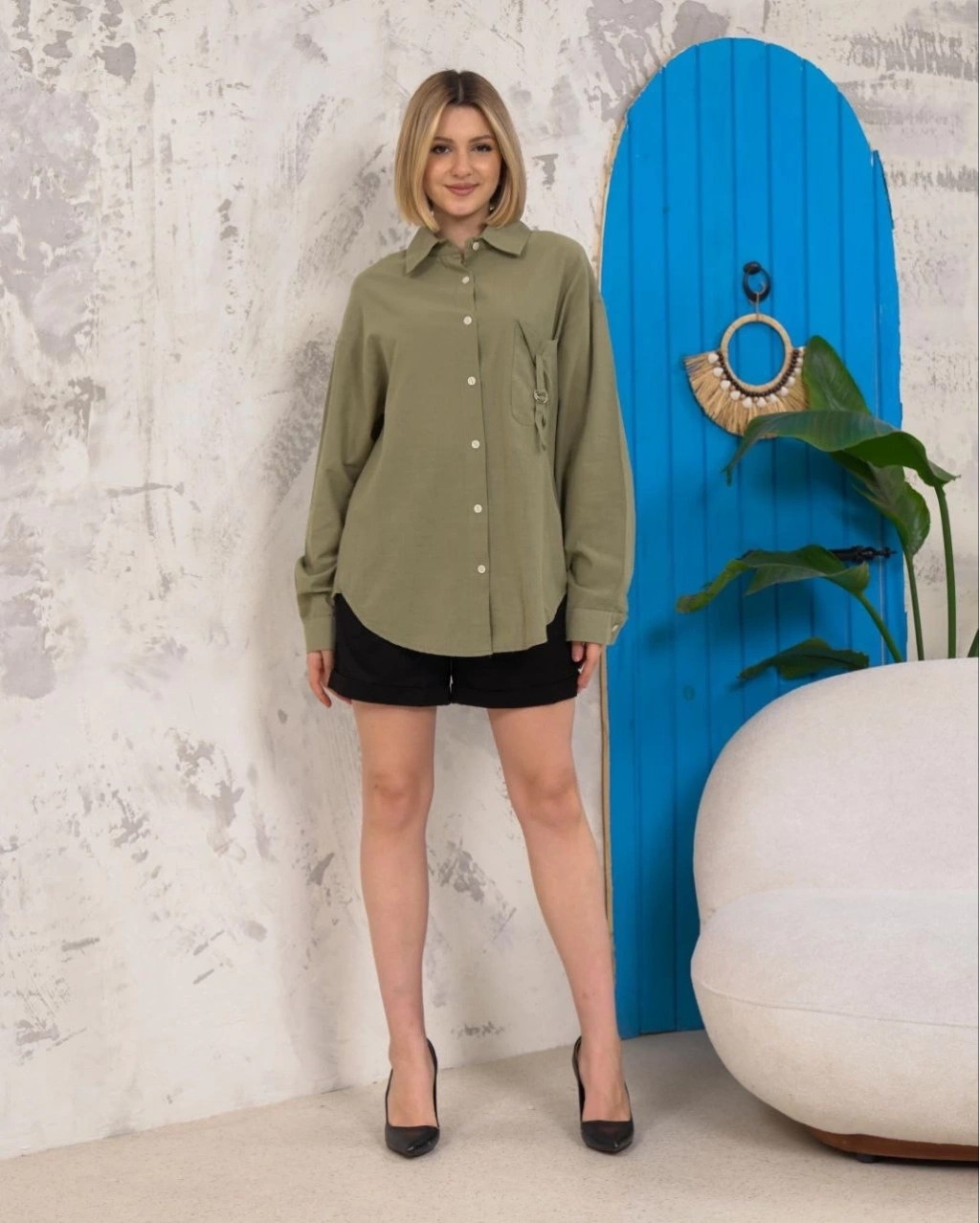 Bu haki renkli relax fit keten gömlek, şıklığı ve rahatlığı bir arada sunar. Hem günlük kullanıma hem de özel günlerde tercih edebileceğiniz şık bir parçadır.