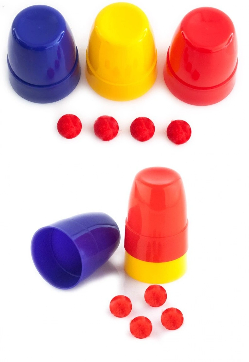 • Canlı ve Dikkat Çekici Renkler:Mavi, Sarı ve Kırmızı kupalar, izleyicinin dikkatini dağıtırken illüzyonunuzu güçlendirir ve gösterinizi daha eğlenceli hale getirir.