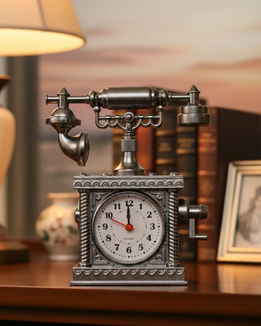 Retro Telefon Görünümlü Çalar Saat Masa ve Raf Dekoru