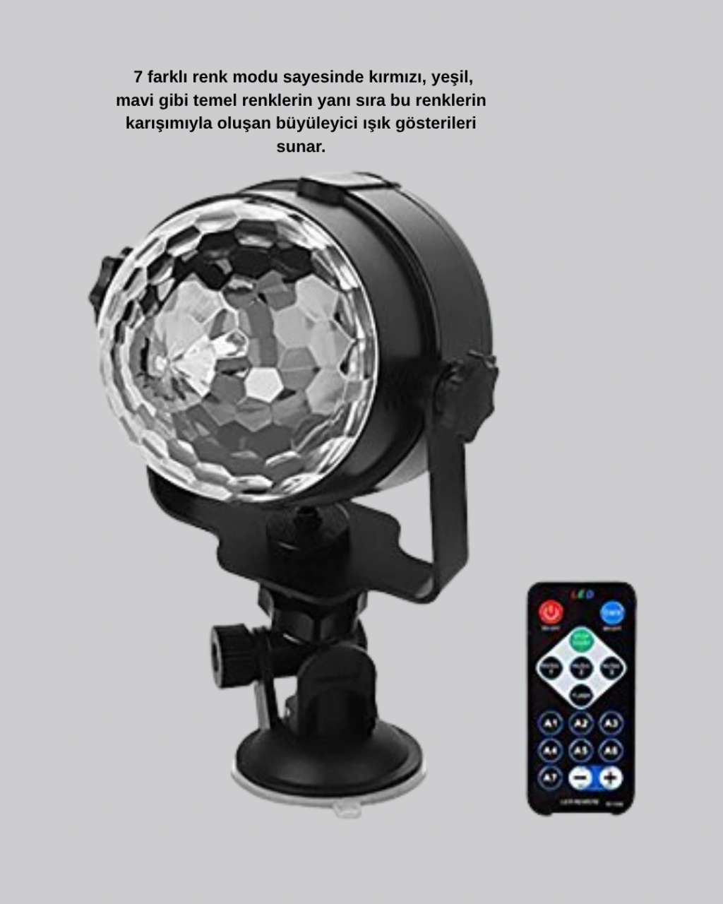 Partilerin enerjisini artırmak için tasarlanmış bu müzik ritmine duyarlı disko topu, 7 farklı renk modu ile ortamınıza büyüleyici bir atmosfer katar. Kırmızı, yeşil, mavi gibi temel renklerin yanı sıra bu renklerin karışımıyla oluşan dinamik ışık efektleri, her türlü partiye renk getirir.Müzik ritmine duyarlı entegre sensör, ses dalgalarını algılayarak ışıkların müziğin temposuna göre yanıp sönmesini sağlar. Böylece ışıklar müzikle uyum içinde hareket eder, dans pistinde eğlenceyi zirveye taşır.Ev partileri, doğum günü kutlamaları, düğünler, karaoke geceleri, kulüpler veya sahne etkinlikleri için mükemmel bir tercihtir.Enerji tasarruflu LED sistemi uzun ömürlü kullanım sunarken, düşük ısı üretimiyle güvenli bir deneyim sağlar. Hafif ve kompakt yapısı sayesinde kolay taşınabilir.Modern tasarımıyla sadece ışık değil, aynı zamanda dekoratif bir obje olarak da dikkat çeker.