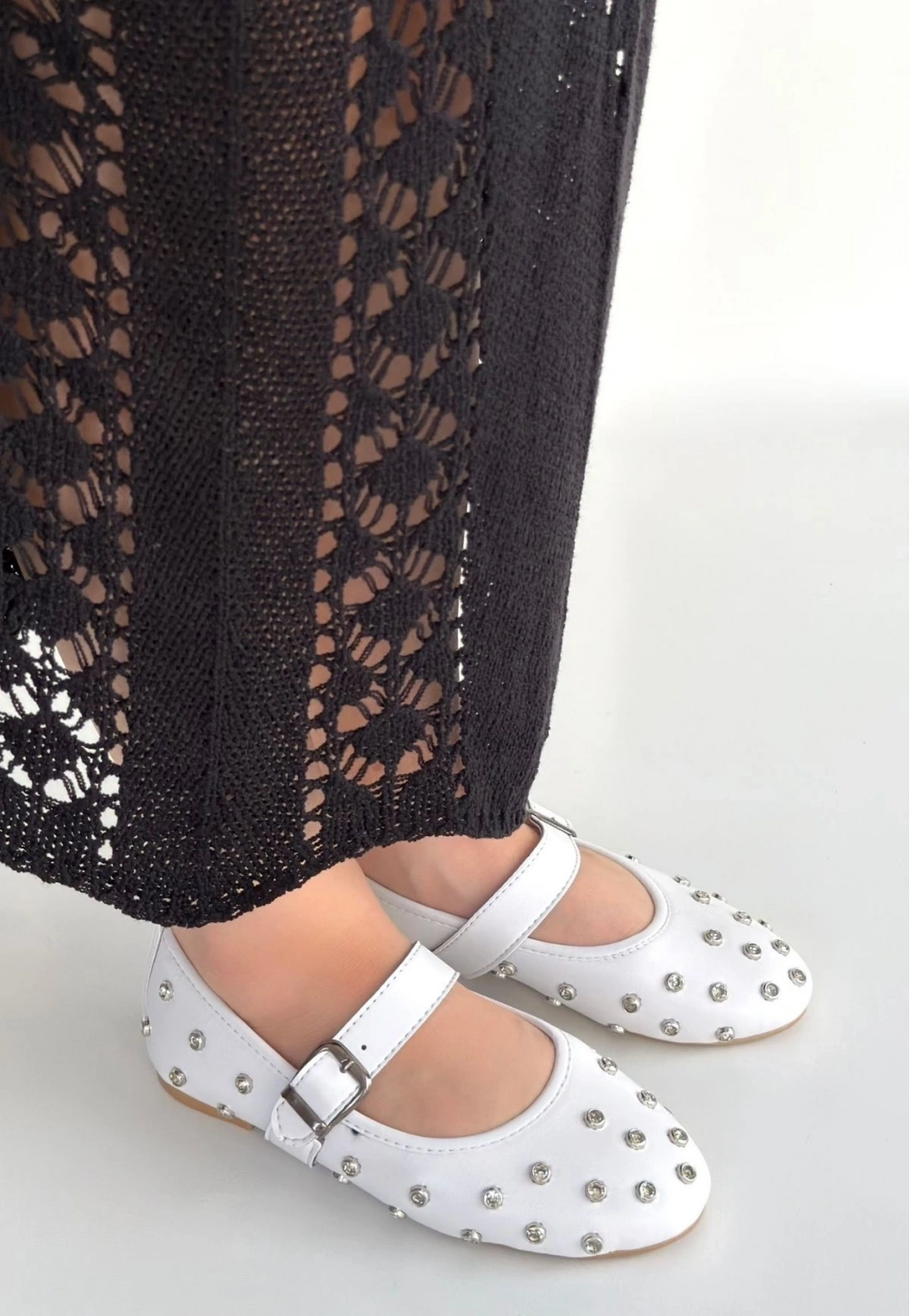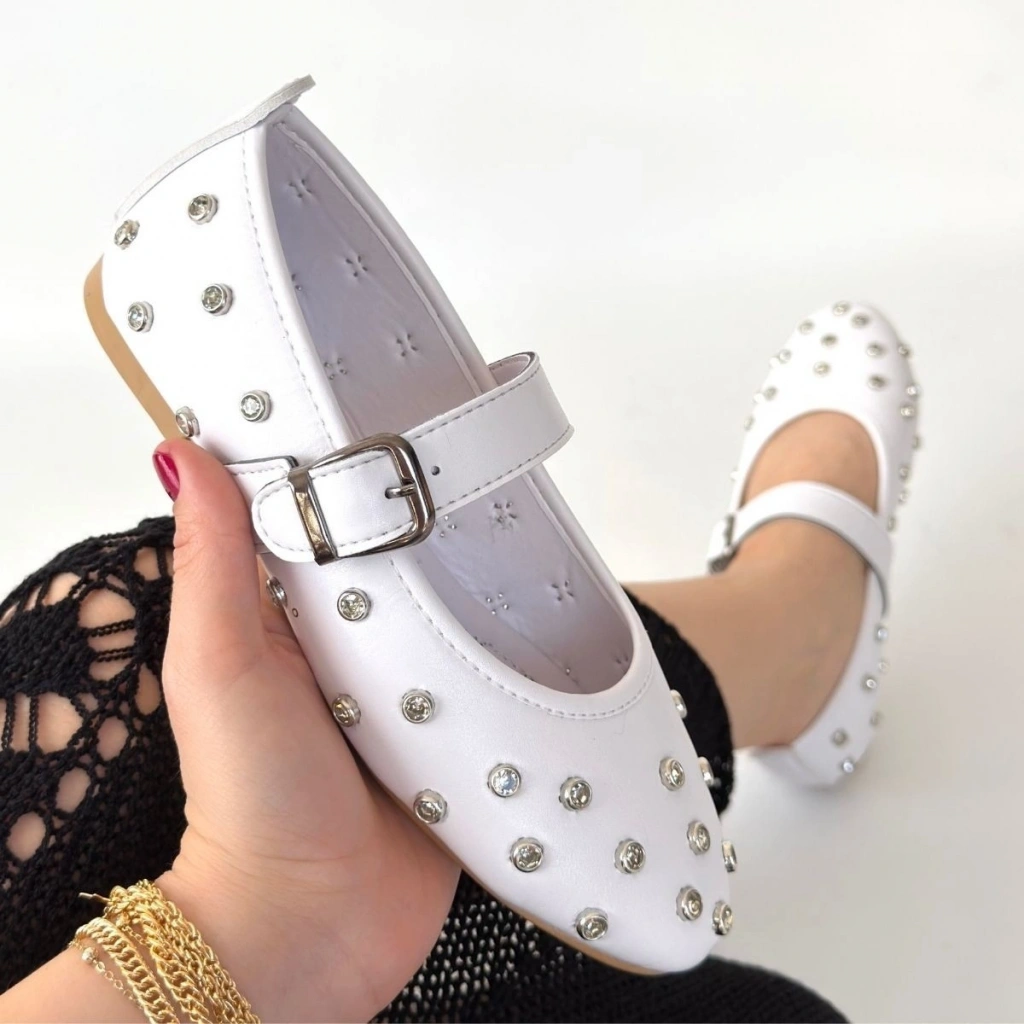 • Ritta Beyaz Cilt Kemerli Babet Ayakkabı