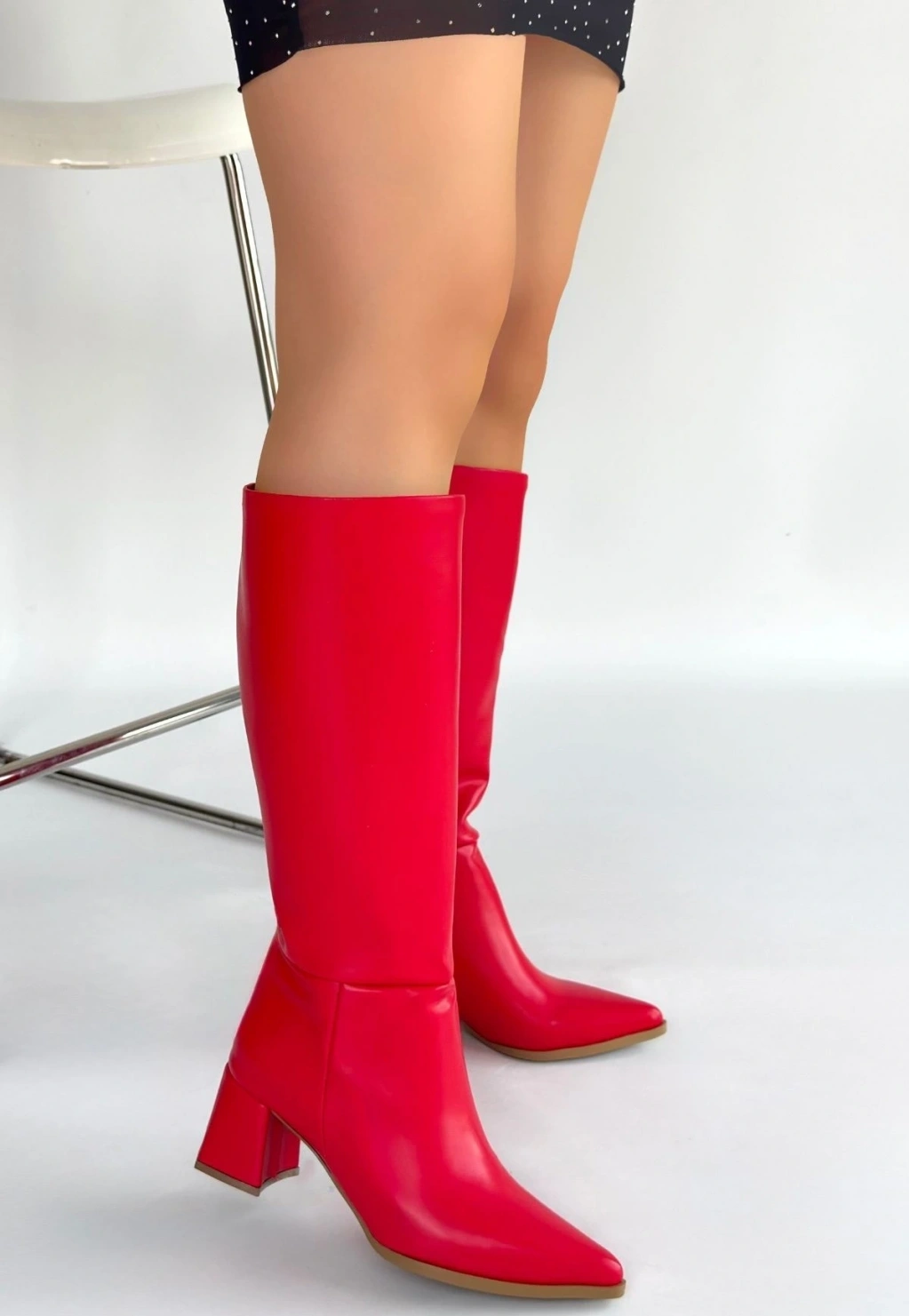 • Roksa Kırmızı Cilt Topuklu Çizme