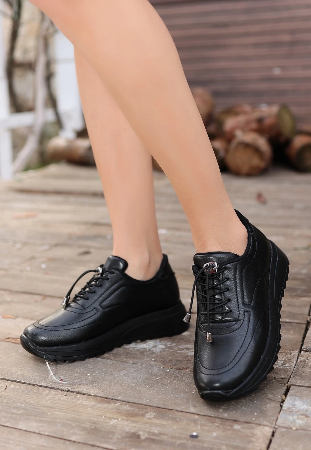• Romy Siyah Cilt Bağcıklı Spor Ayakkabı