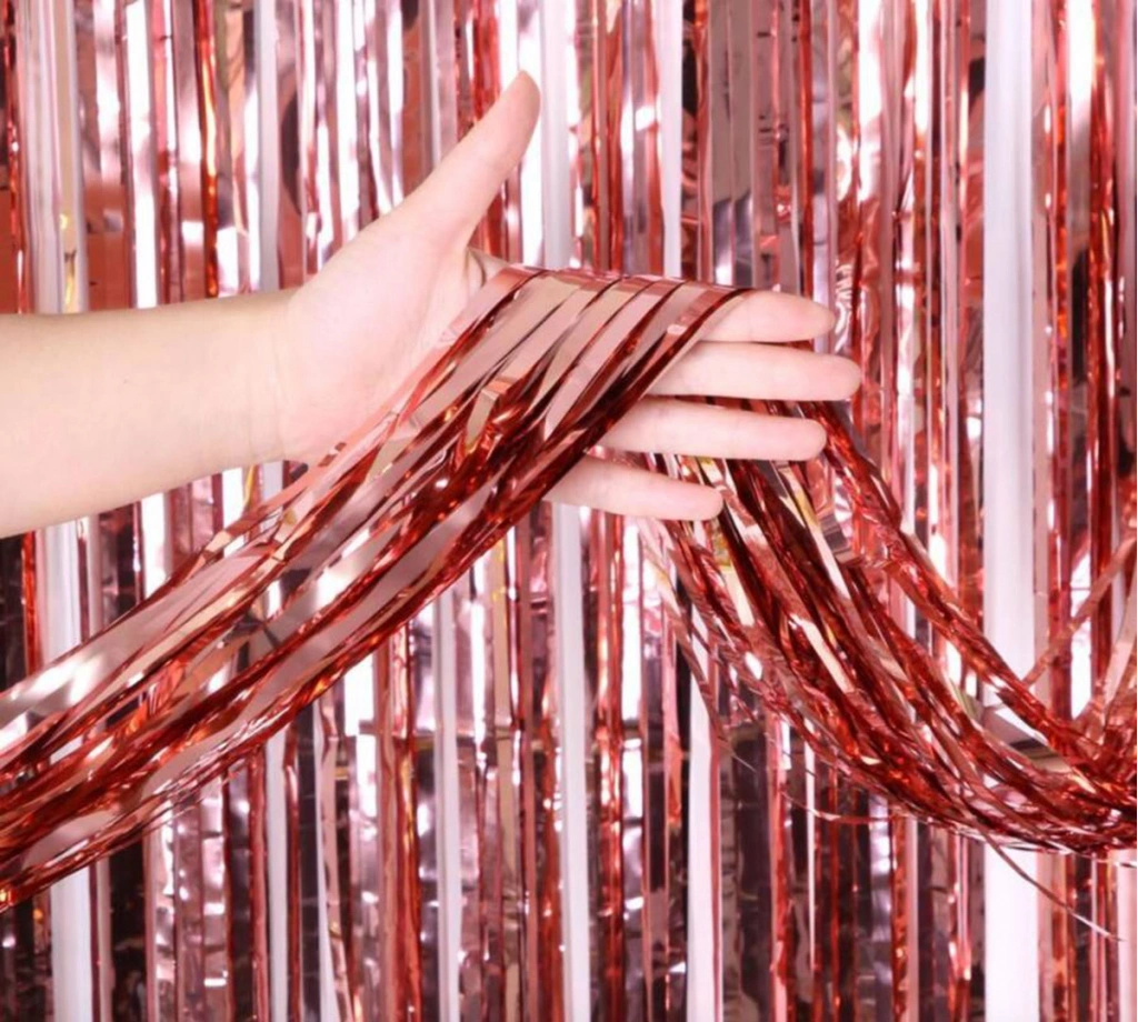 Rose Gold Püsküllü Kapı Perdesi - Parti, Bekarlığa Veda, Doğum Günü 1x2 m