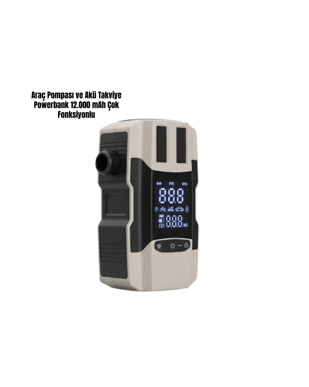 Araç pompası ve akü takviye powerbank, tek cihazda birden fazla ihtiyacı karşılamak isteyenler için ideal bir çözümdür. 12.000 mAh kapasitesi, hem akü takviyesi hem de mobil cihaz şarjı için yeterli güç sunar. Lastik şişirme özelliği, yolculuk sırasında pratiklik sağlar. Kompakt ve taşınabilir yapısı sayesinde araçta sürekli bulundurulabilir. Günlük kullanımda ve acil durumlarda güvenilir bir yardımcıdır.