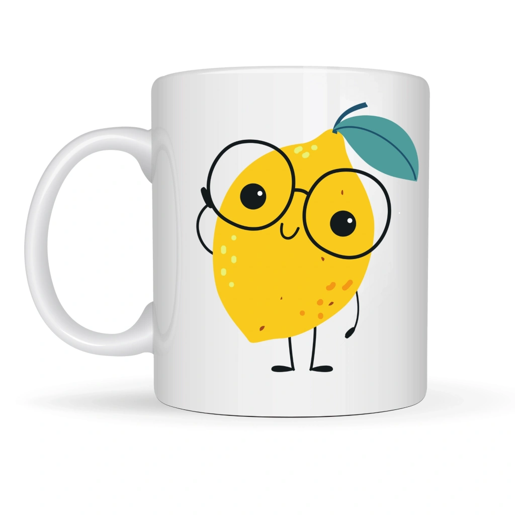 Sevimli Limon Tasarımlı Porselen Kupa MODEL 121 – Gözlüklü Tatlı Limon Figürlü Kahve & Çay Kupası